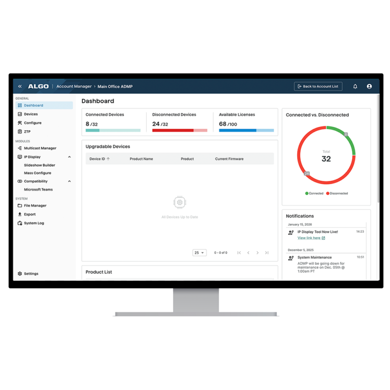IP Speakers, Displays, Intercoms, Paging Adapters, and Visual Alerters.