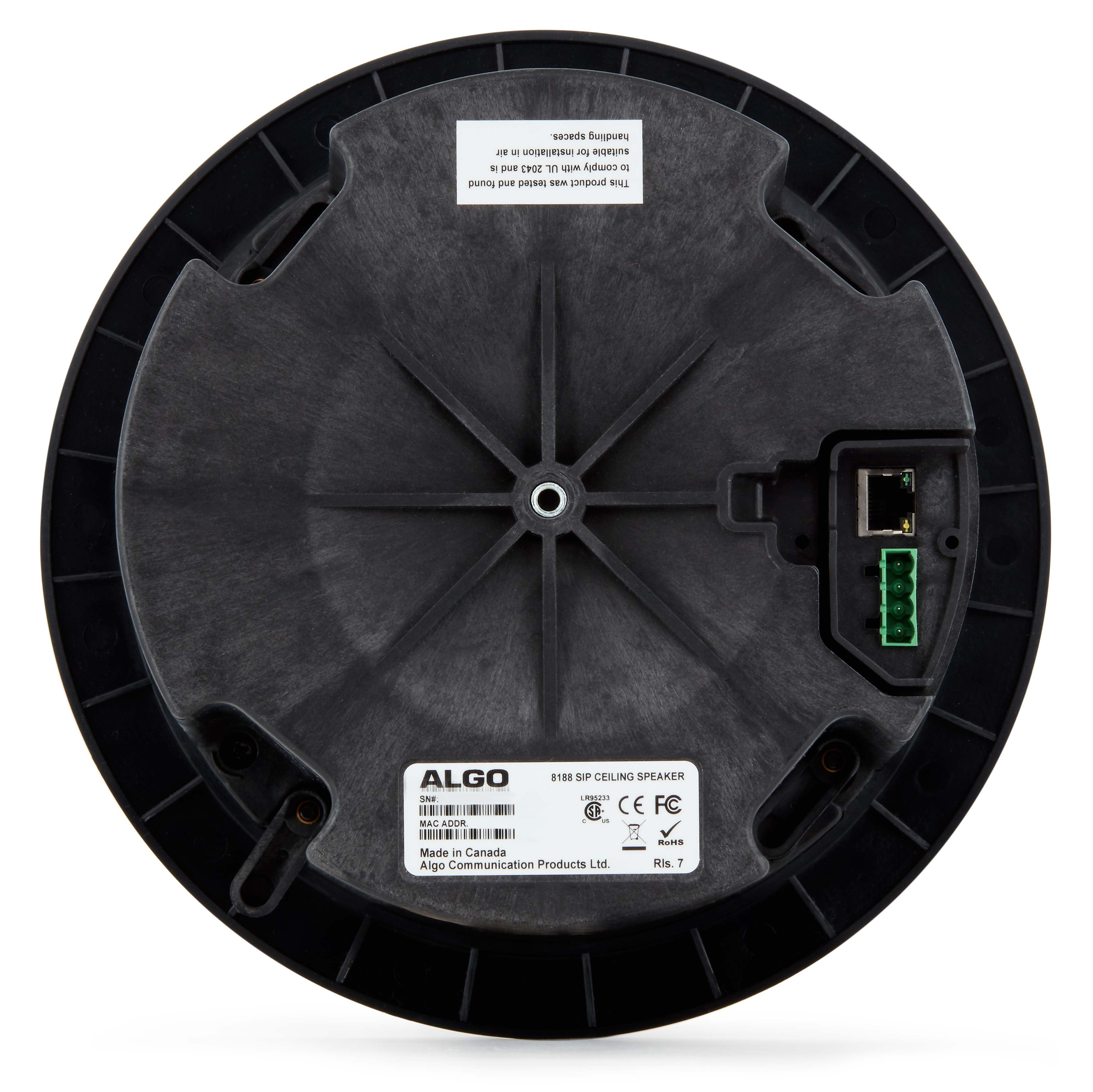 Toutes les fonctionnalités et spécifications du haut-parleur de plafond SIP Algo 8188 sont conservées dans le haut-parleur de plafond SIP Algo 8188-IC InformaCast.